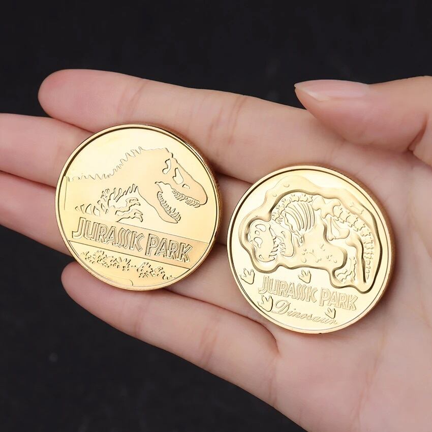 映画「ジュラシック・パーク」の記念コインです。 ティラノサウルスをあしらっており金色も相まって、存在感、高級感があります。 贈り物やコレクションにいかがでしょうか? サイズ:直径40mm 厚さ3mm ※海外インポート商品につき、擦り傷等がある場合がございます。あらかじめご了承ください。